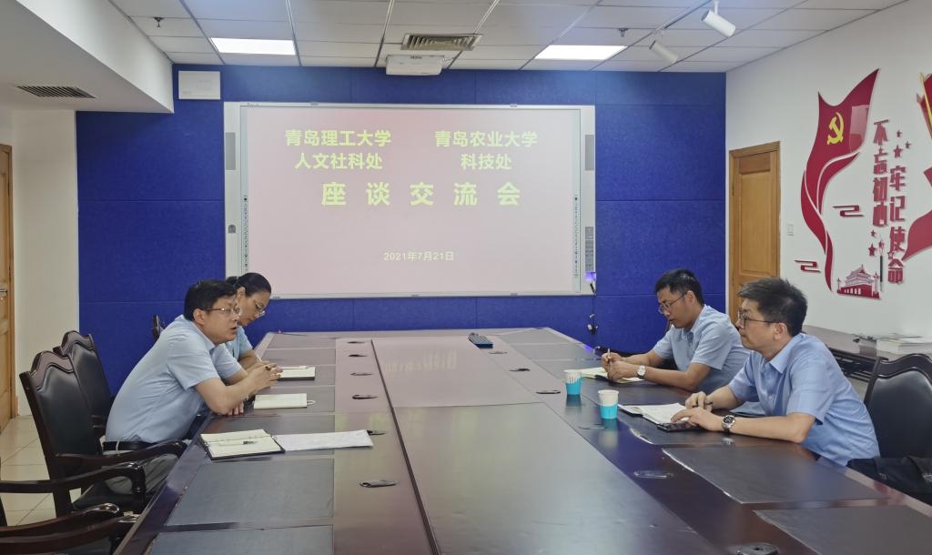 7月21日,我校人文社科处处长郭印、副处长唐洪伟赴青岛农业大学科技处开展调研活动,青岛农业大学科技处副处长辛丽轲及相关工作人员出席了调研会。