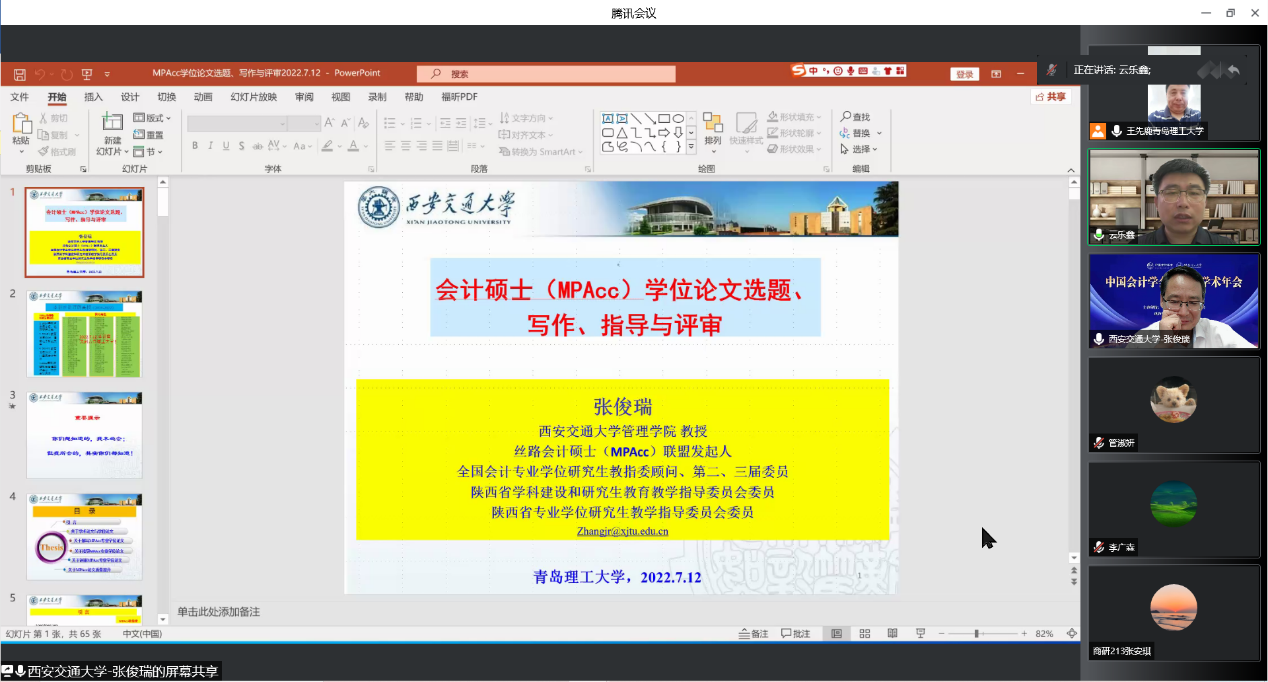 7月12日,3044永利集团官网礼贤人文大讲堂(第6讲)暨西海岸商学论坛(第23期)通过线上形式举行,本期讲座由商学院承办,宣讲主题为“会计硕士专业学位论文撰写、指导与评审”。西安交通大学管理学院二级教授、博士生导师张俊瑞担任主讲,商学院副院长云乐鑫及相关专业教师与研究生参加会议,会计系主任王先鹿主持会议。