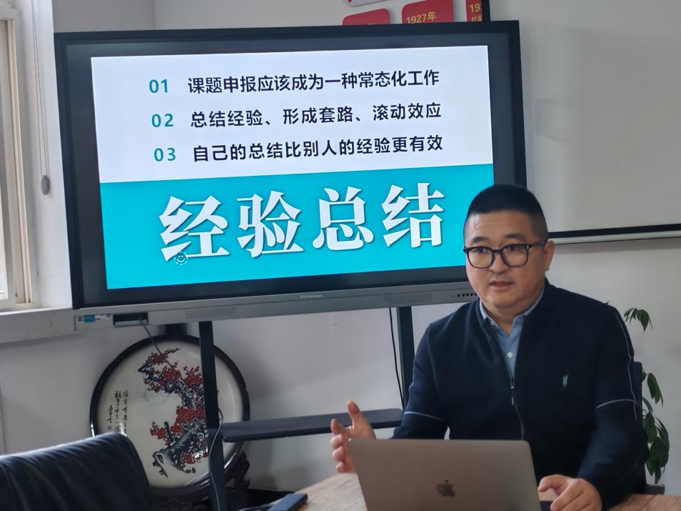 朱宏轩首先对老师们积极参加高水平基金项目申报的热情进行了肯定,介绍了国家级和省部级高水平基金项目的基本情况,部署了学校和学院对国家社会科学基金项目申报工作的进度和时间安排,并结合自身研究成果和项目立项经验,进行了国家社科基金选题与申报分享报告。