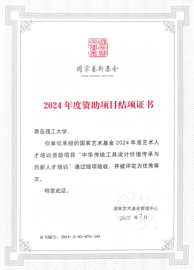 近日,学校国家艺术基金2024年度人才培训资助项目“中华传统工具设计价值传承与创新人才培训”顺利通过国家艺术基金结项验收,并被评定为优秀等次。