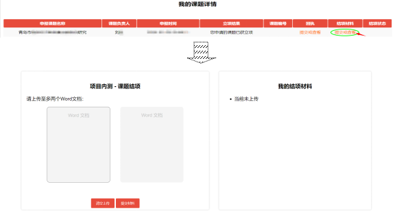 注意:提交两项WORD文件,即本通知附件1、2,分别上传;结项材料提交后无法更改,请保证材料的准确性。