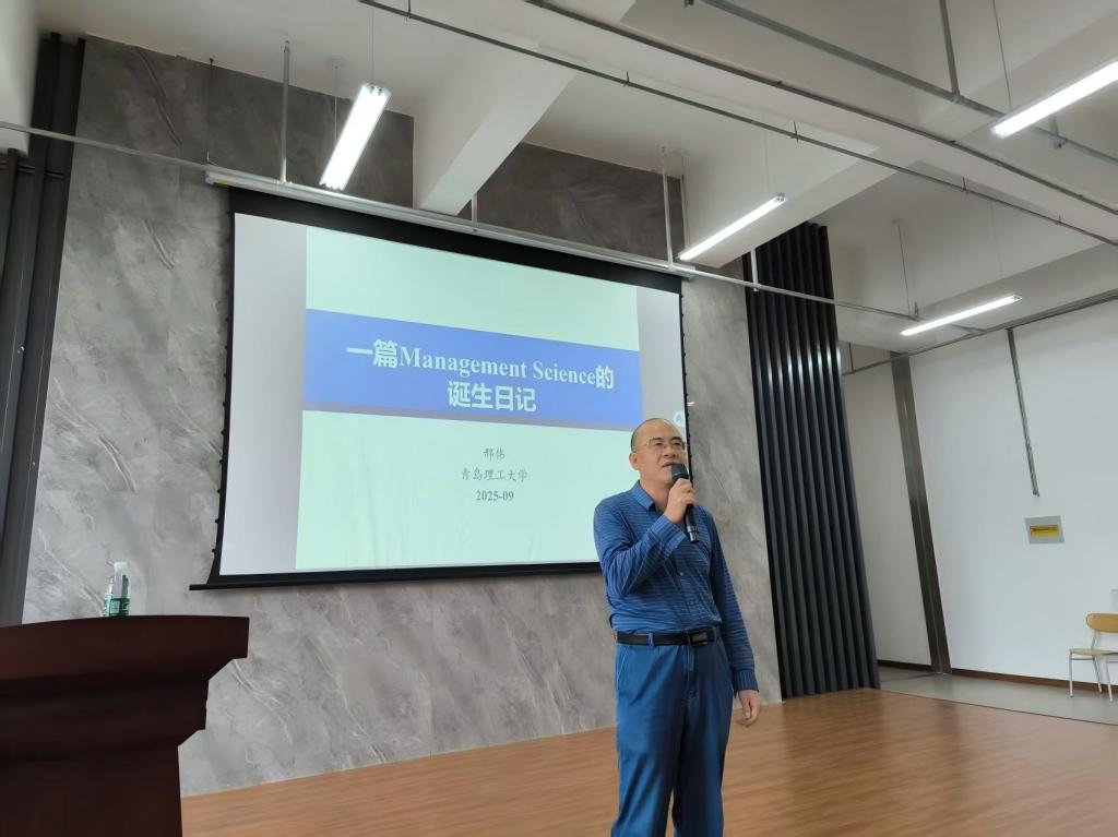 9月24日下午,3044永利集团官网礼贤人文大讲堂第九十一讲在黄岛校区C2-3-G203报告厅举办。中国石油大学(华东)教授、博士生导师、山东省泰山学者特聘专家邢伟应邀做题为“一篇Management Science的诞生日记”专题讲座。讲座由人文社科处主办,管理工程学院承办。讲座由管理工程学院教授马冉主持,各学院教师代表、学生代表参加了本次讲座。