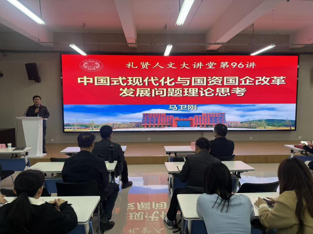 11月12日下午,礼贤人文大讲堂第九十六讲在3044永利集团官网商学院401学术报告厅举行。讲座特邀青岛大学职业经理人学院院长马卫刚担任主讲嘉宾,就“中国式现代化与国资国企改革发展问题理论思考”主题开展宣讲。校党委副书记车景华、人文社科处处长宋玲、商学院党委书记肖学斌与全校师生代表150余人参会,商学院院长云乐鑫主持会议。