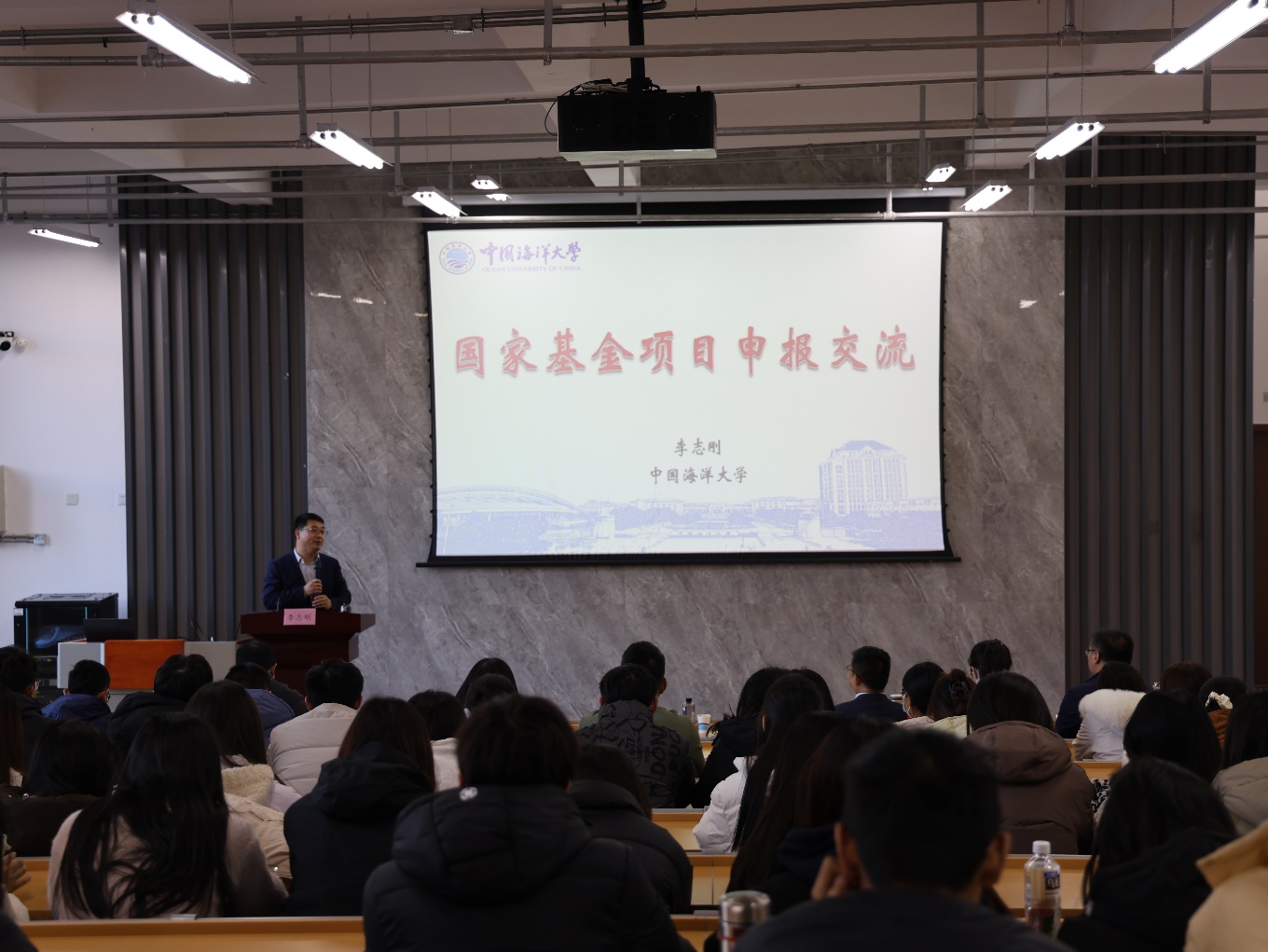 11月27日,3044永利集团官网礼贤人文大讲堂第六十二讲在我校黄岛校区学术报告厅举办。中国海洋大学管理学院副院长李志刚教授应邀作题为“国家基金项目申报交流”专题讲座。商学院院长云乐鑫教授主持会议,人文社科处、商学院相关领导及全校150余名师生参加讲座。