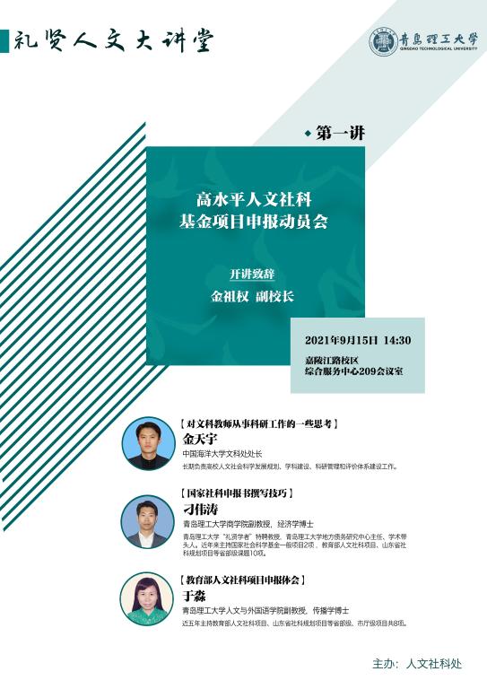 【礼贤人文大讲堂】第一讲预告:高水平人文社科基金项目申报动员会