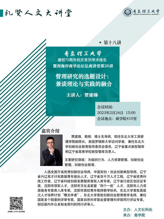 【礼贤人文大讲堂】第十八讲预告:管理研究的选题设计:兼谈理论与实践的融合