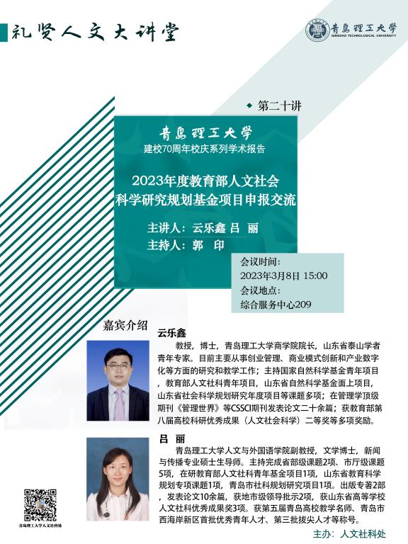 【礼贤人文大讲堂】第二十讲预告:2023年度教育部人文社会科学研究规划基金项目申报交流