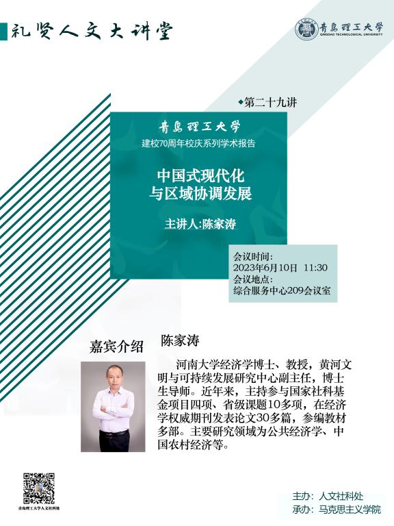 【礼贤人文大讲堂】第二十九讲预告:中国式现代化与区域协调发展