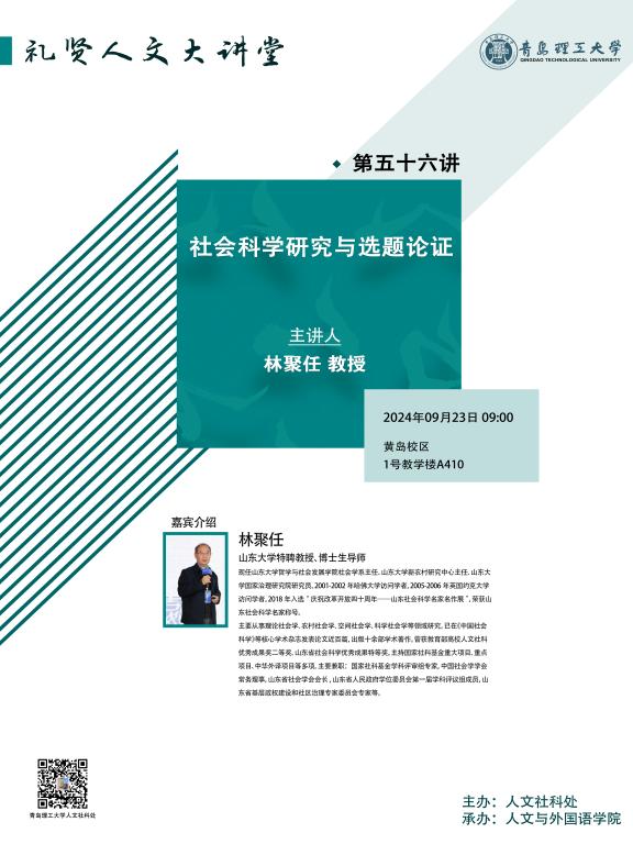 【礼贤人文大讲堂】第五十六讲预告:社会科学研究与选题论证