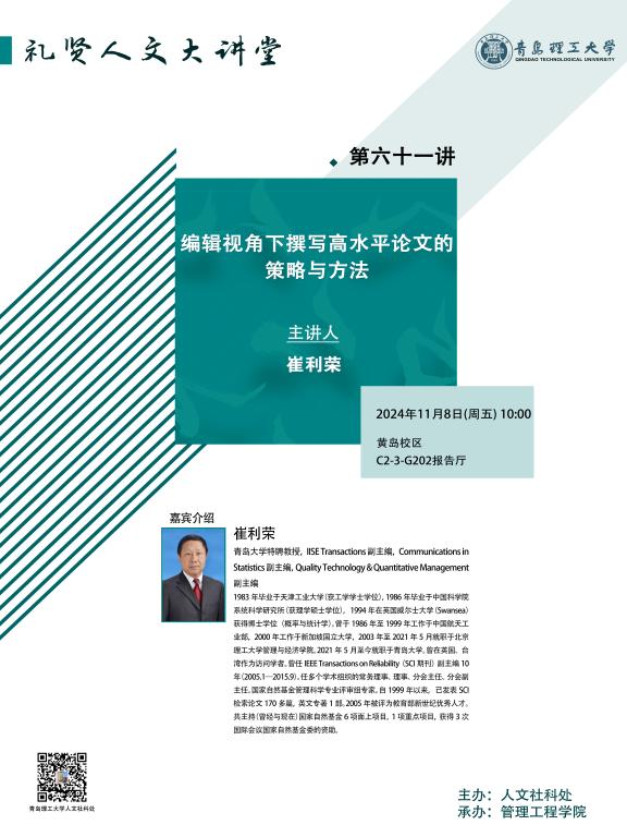 【礼贤人文大讲堂】第六十一讲预告:编辑视角下撰写高水平论文的策略与方法