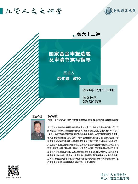【礼贤人文大讲堂】第六十三讲预告:国家基金申报选题及申请书撰写指导