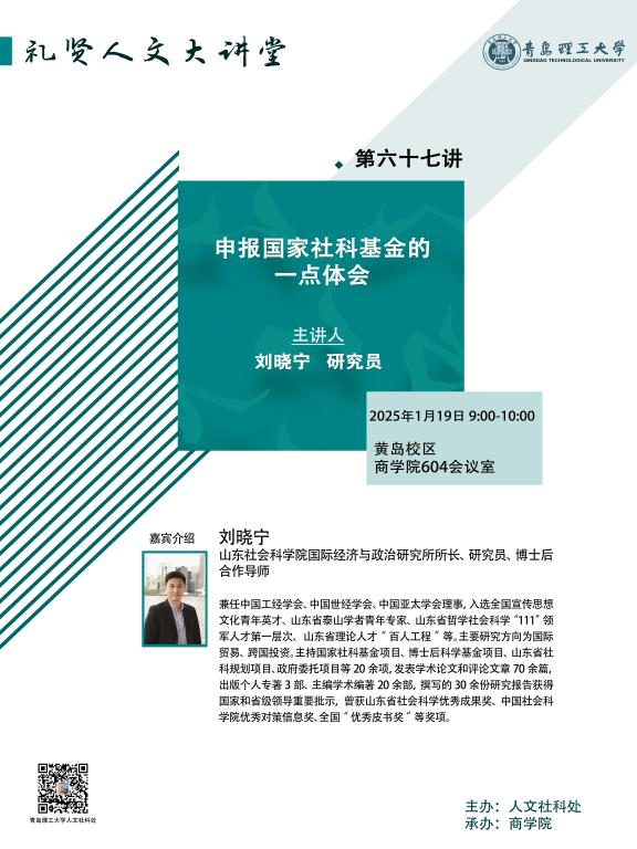 【礼贤人文大讲堂】第六十七讲预告:申报国家社科基金的一点体会